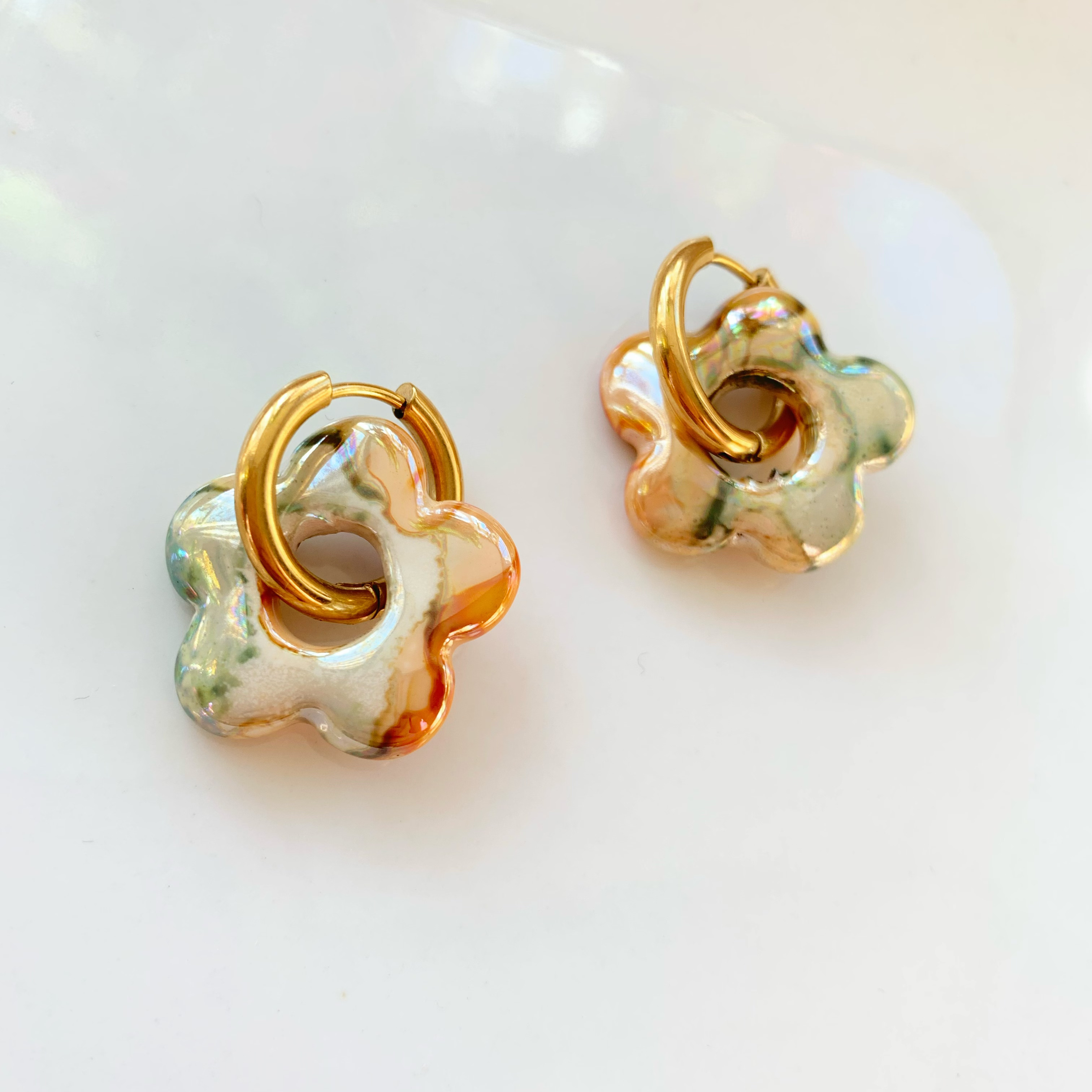 Griekse Keramiek Bloem Oorbellen Groen-Oranje