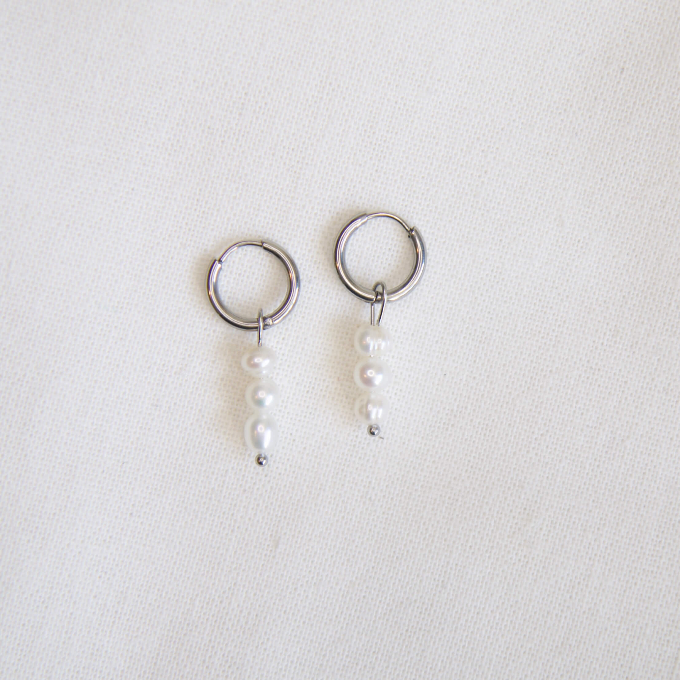 Deze oorbellen zijn gemaakt van stainless steel ringen met daaraan zowel een hanger met zoetwaterparels! Heb je de matchende armband al gespot?