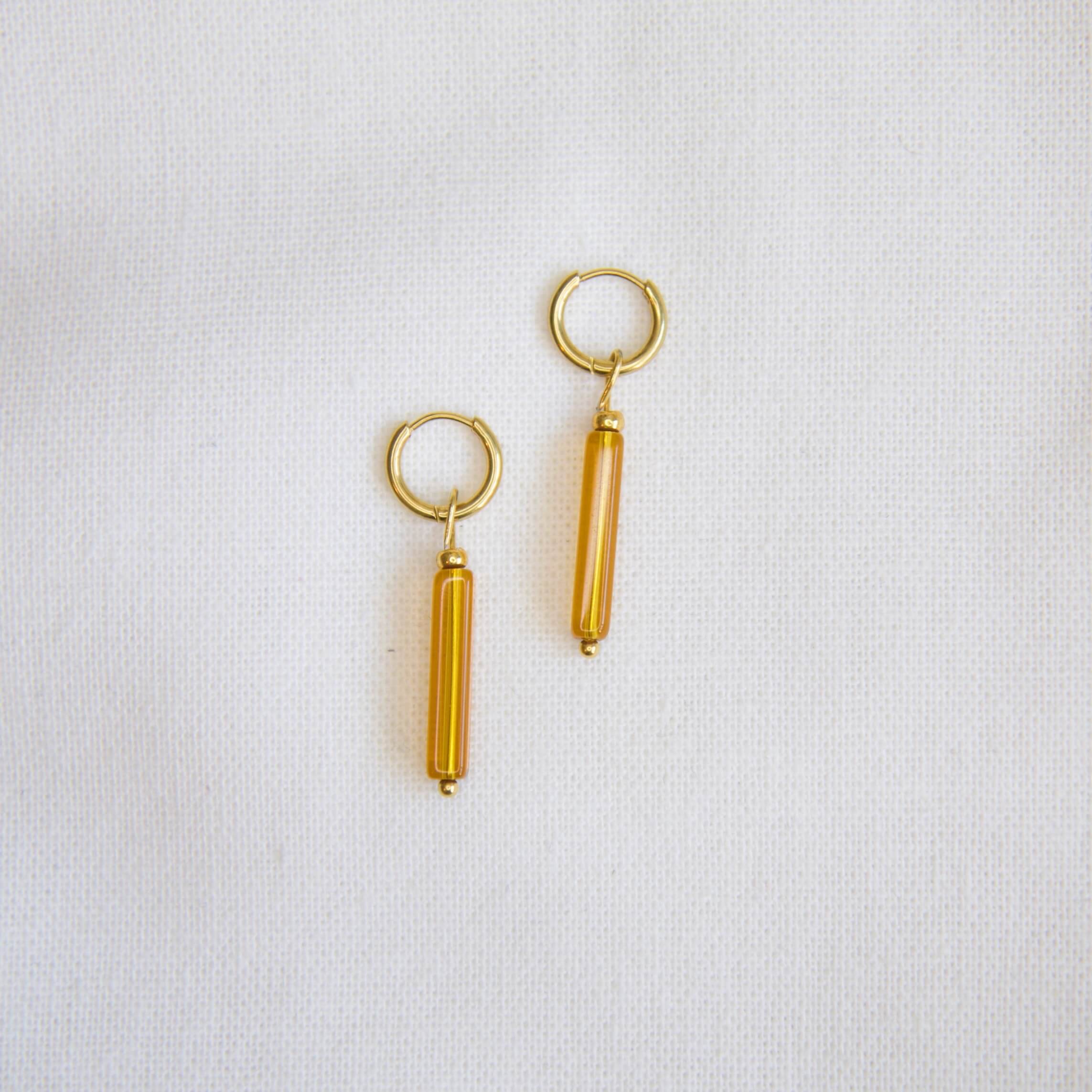Deze oorbellen zijn gemaakt van stainless steel ringen met hangers van glas tubes en Miyuki kralen!