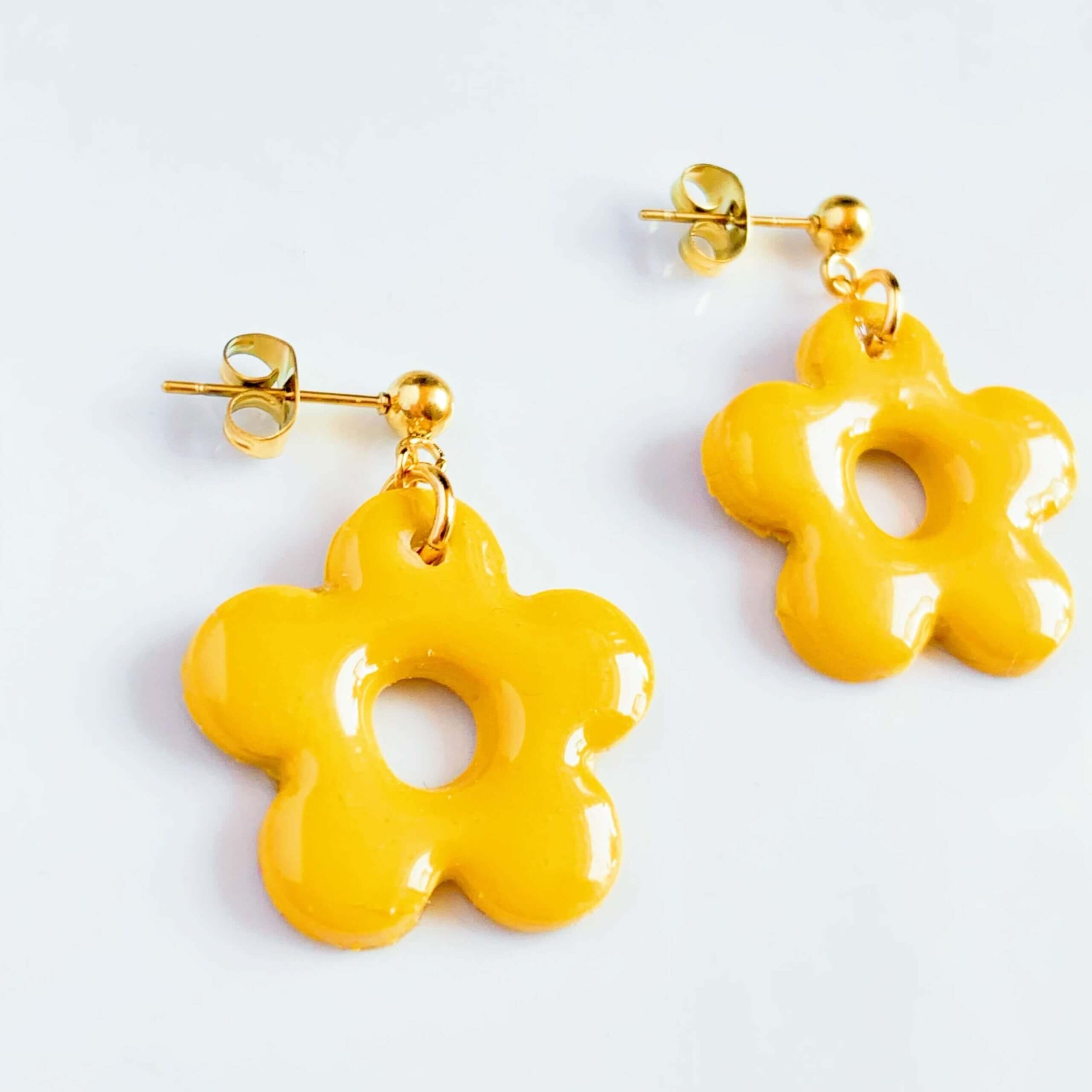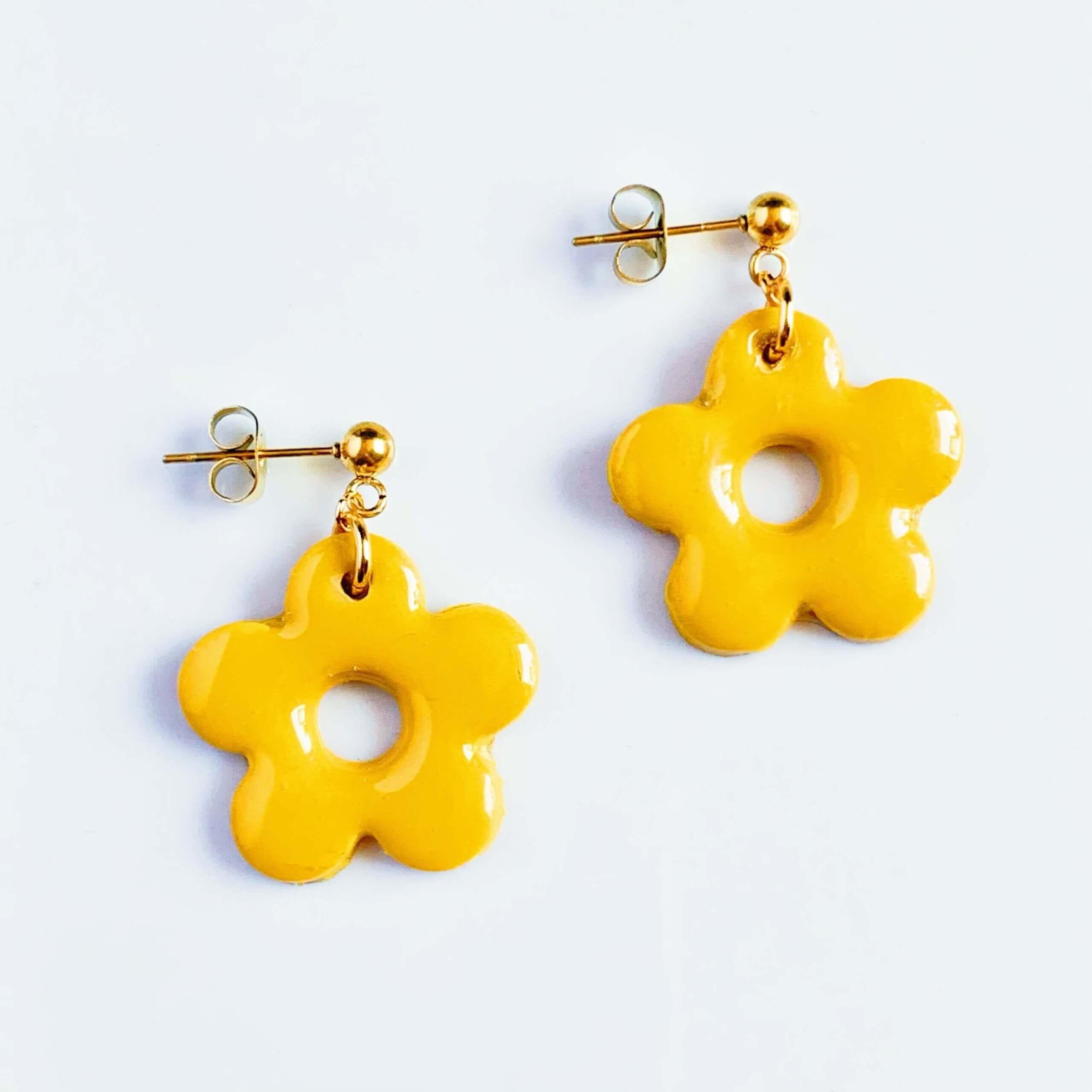 Poly Bloem Oorbellen Okergeel