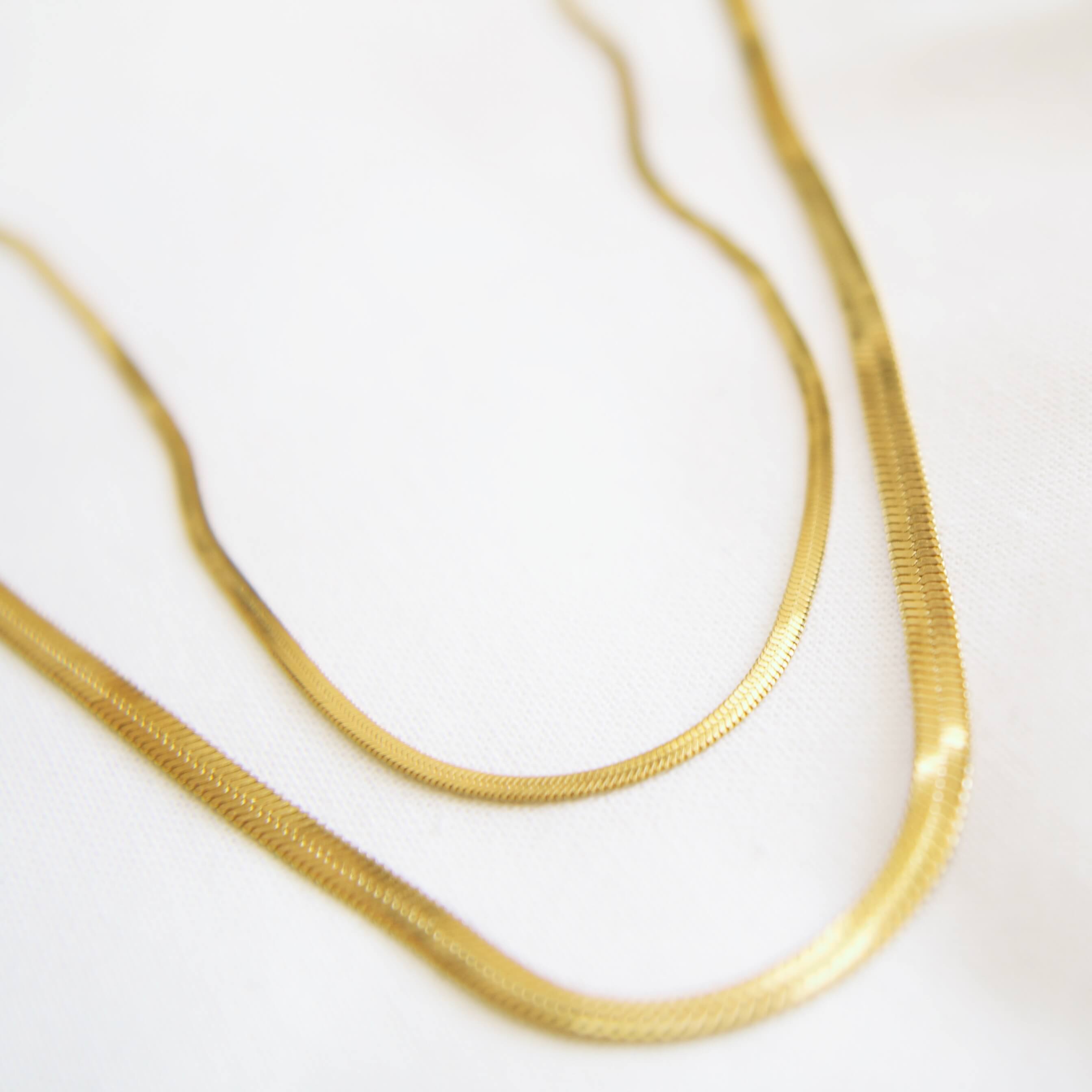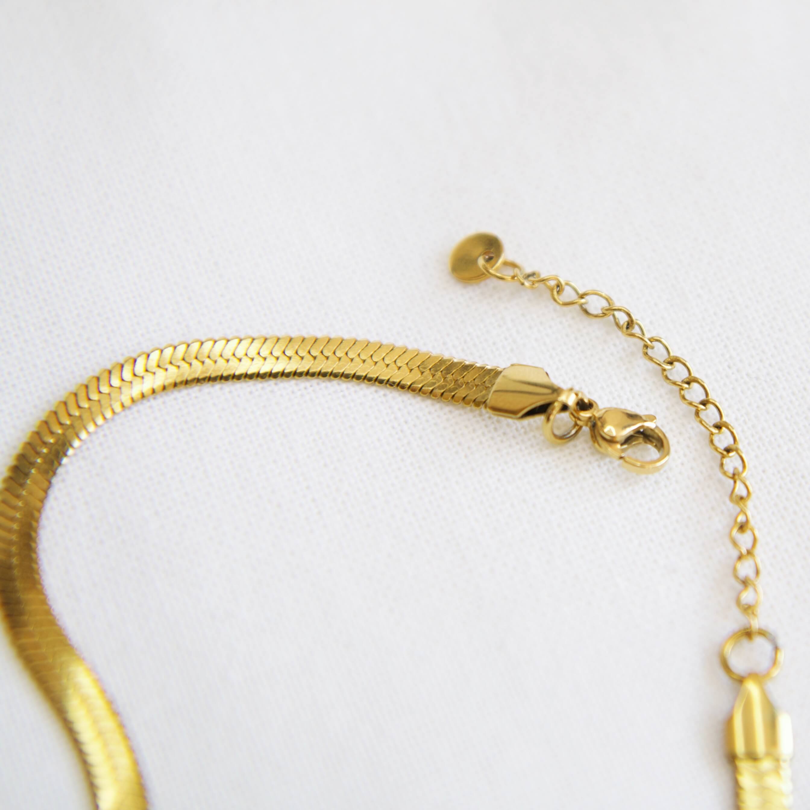 Match deze gave snake chain met de dikke versie en de snake chain armbanden en maak je outfit helemaal compleet!